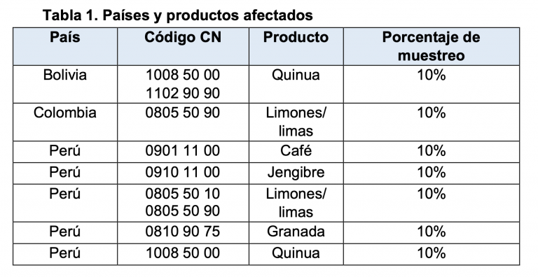 + Adicional a lo establecido en el numeral a) de esta comunicación, se deberá tomar al menos una muestra de cultivo cada año en cada operador, tal como se define en la tabla 1. La muestra se tomará de los cultivos en el campo, en el momento más adecuado para detectar el posible uso de plaguicidas. Esta medida es aplicable también a los nuevos operadores y a otros que cultiven campos en conversión a la agricultura ecológica.